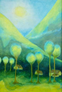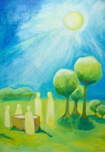 2004Dit schilderij heeft een relatie met mijn Tibetaanse Klankschalen, licht, dochters