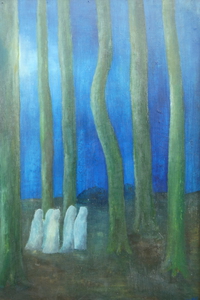 2010Het schilderij laat diverse figuren zien in landschap van koptische lettertekens op panelen of stenen.. Het schilderij is ook hoes schildering van de cd Words in Time"en van het boek "Woorden in de Tijd" zie ook: www.paulvens.com